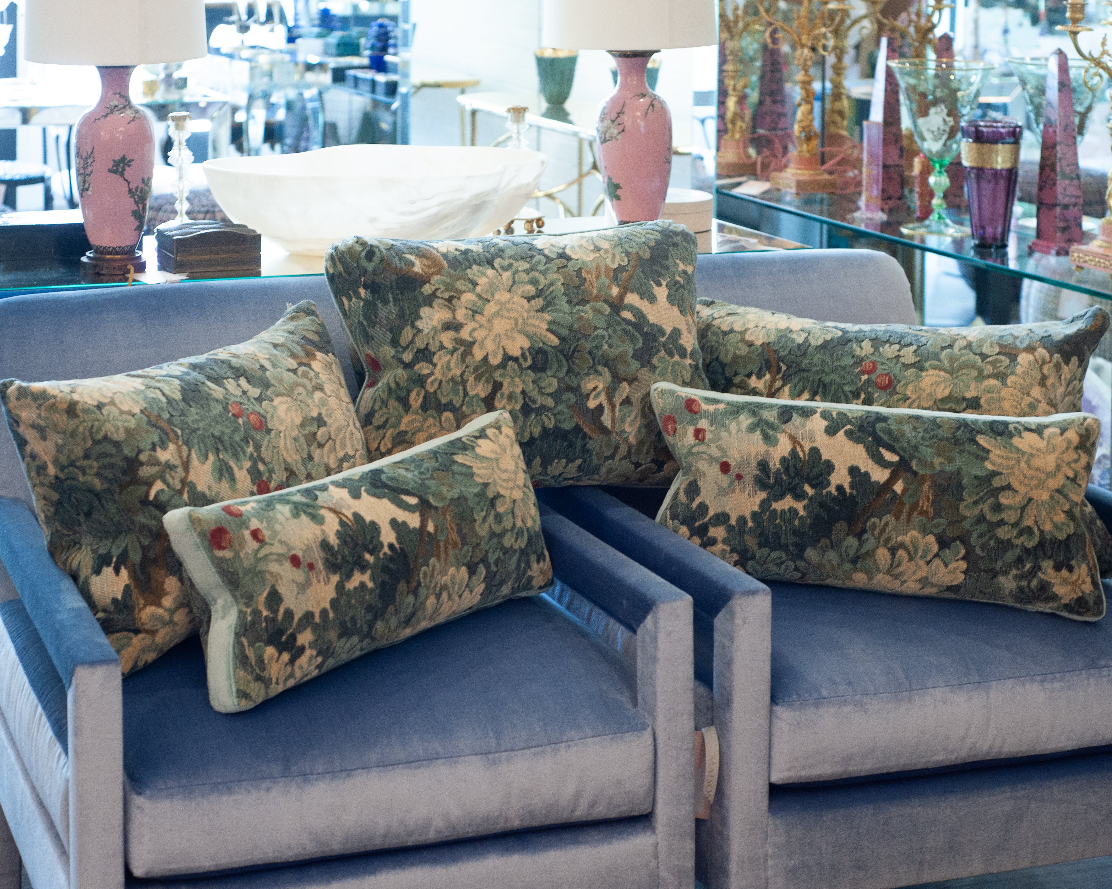 STUDIO MAISON NURITA COLONY "MARLY" BLUE LINEN VELVET VEDURE TAPESTRY PILLOW