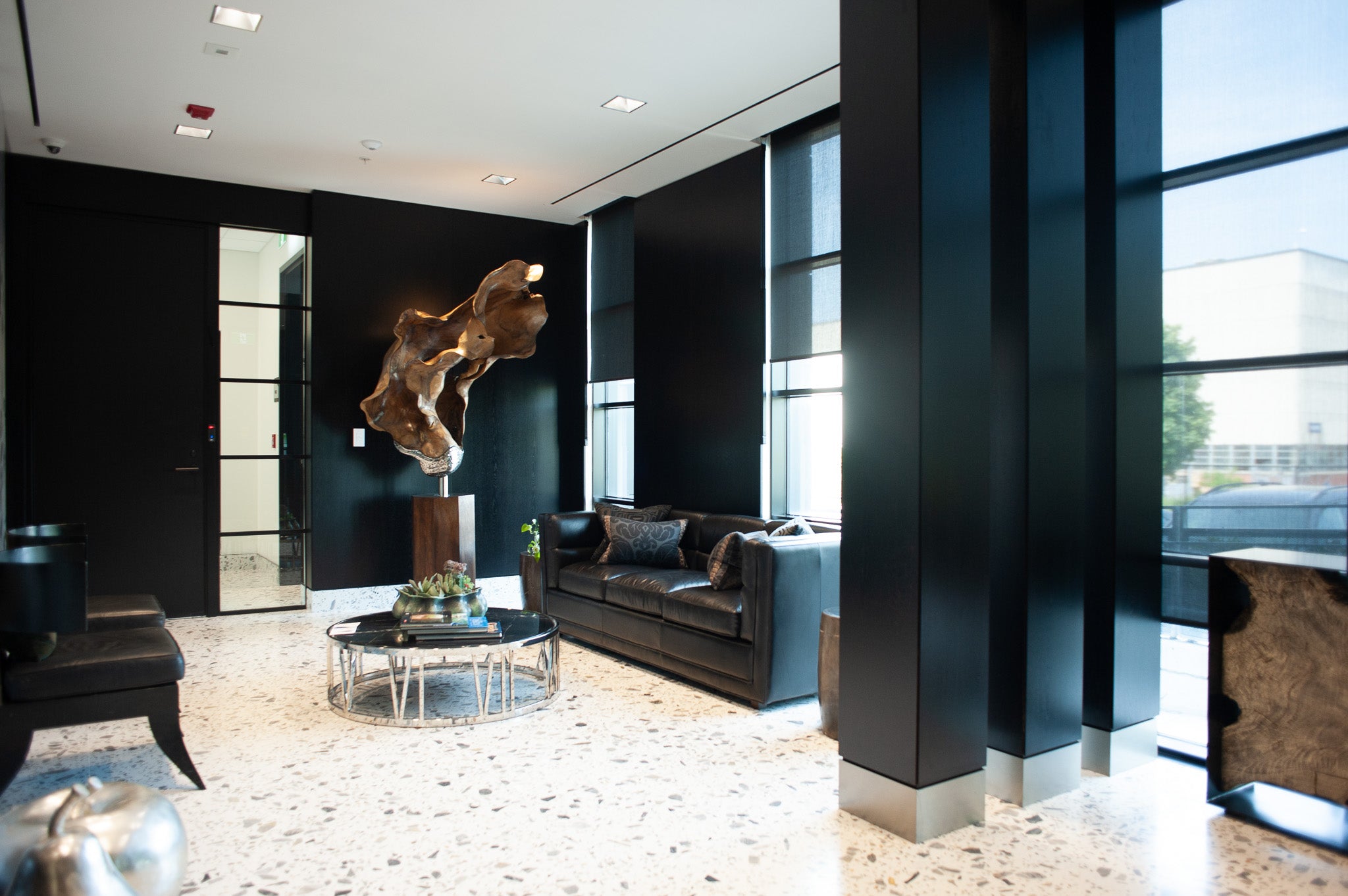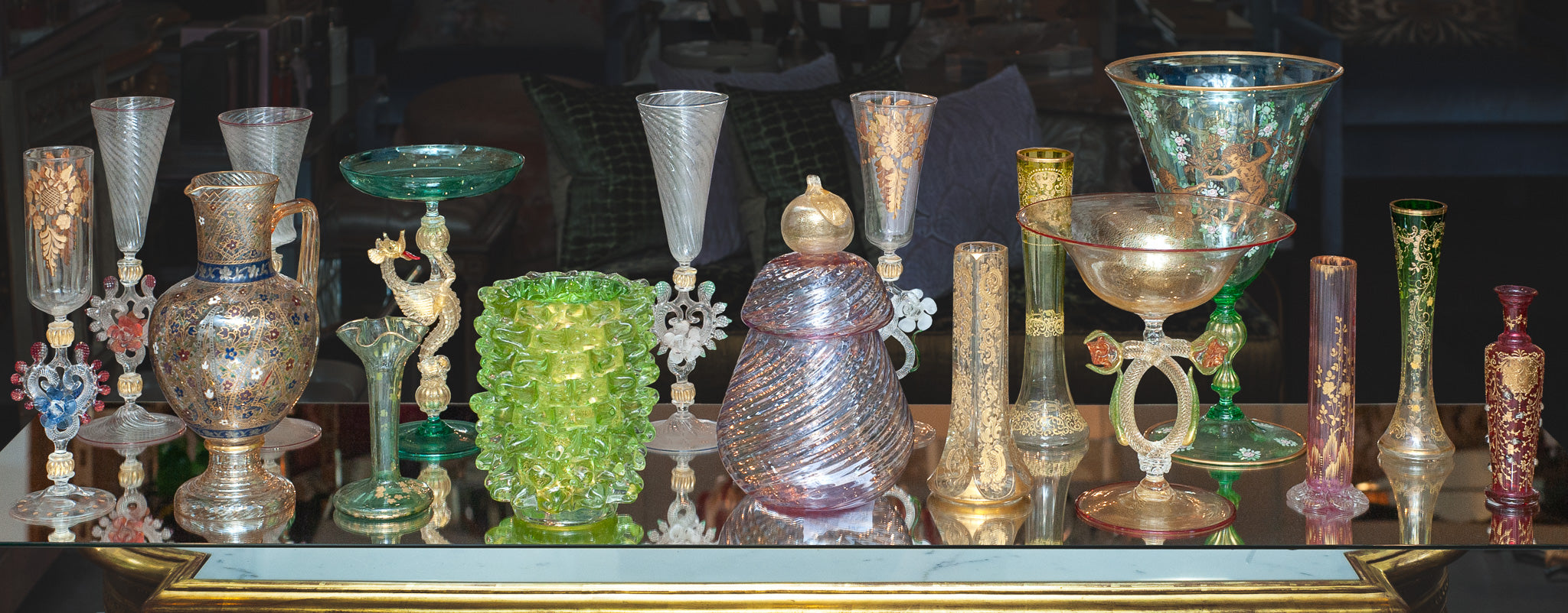 STUDIO MAISON NURITA PAIR OF SMOKED GLASS TABLES WITH BLACKENED BRASS BASES