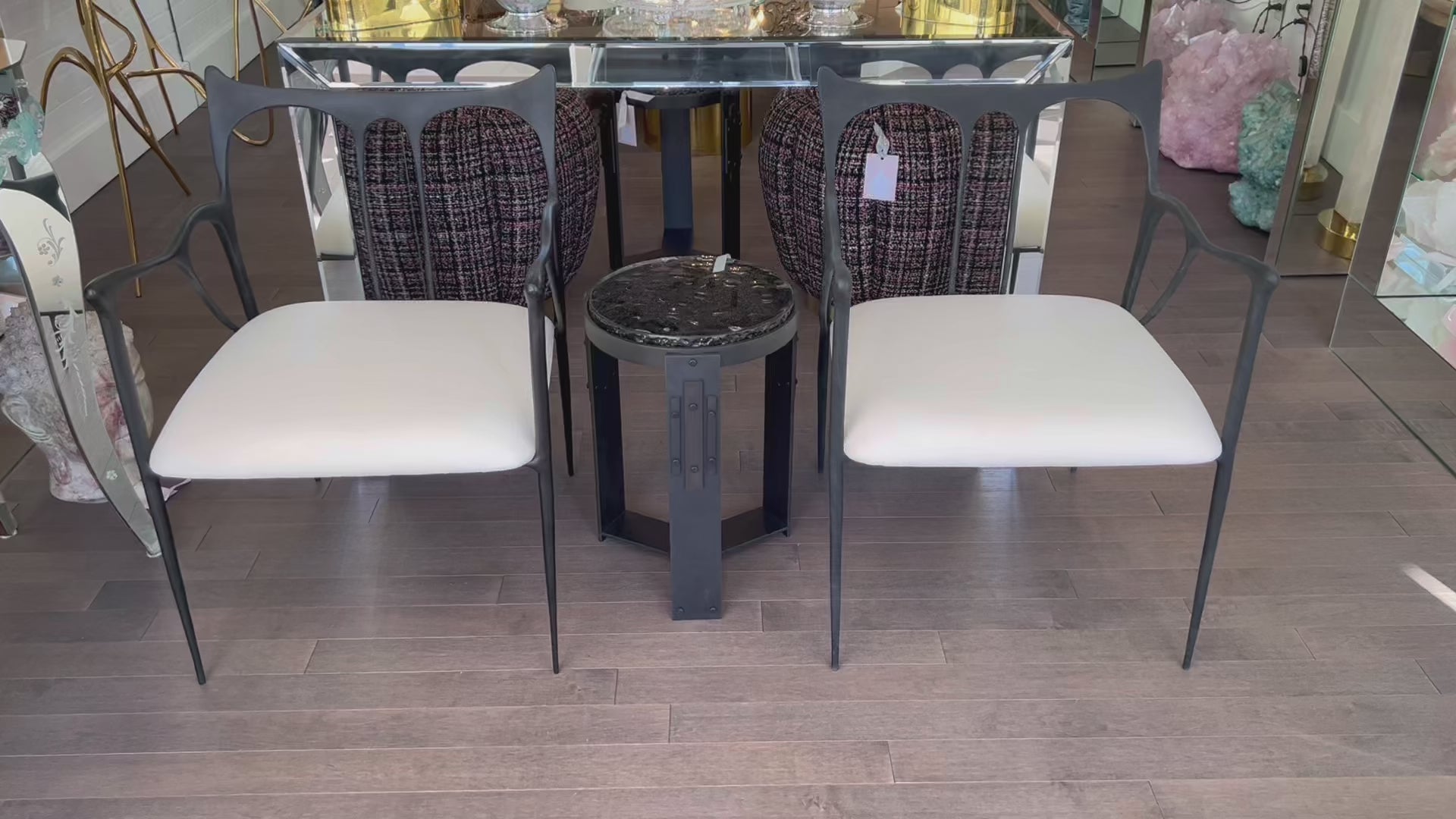 CONTEMPORARY BLACKENED CAST BRASS SCULPTURAL ARMCHAIR WITH CALICO SEAT